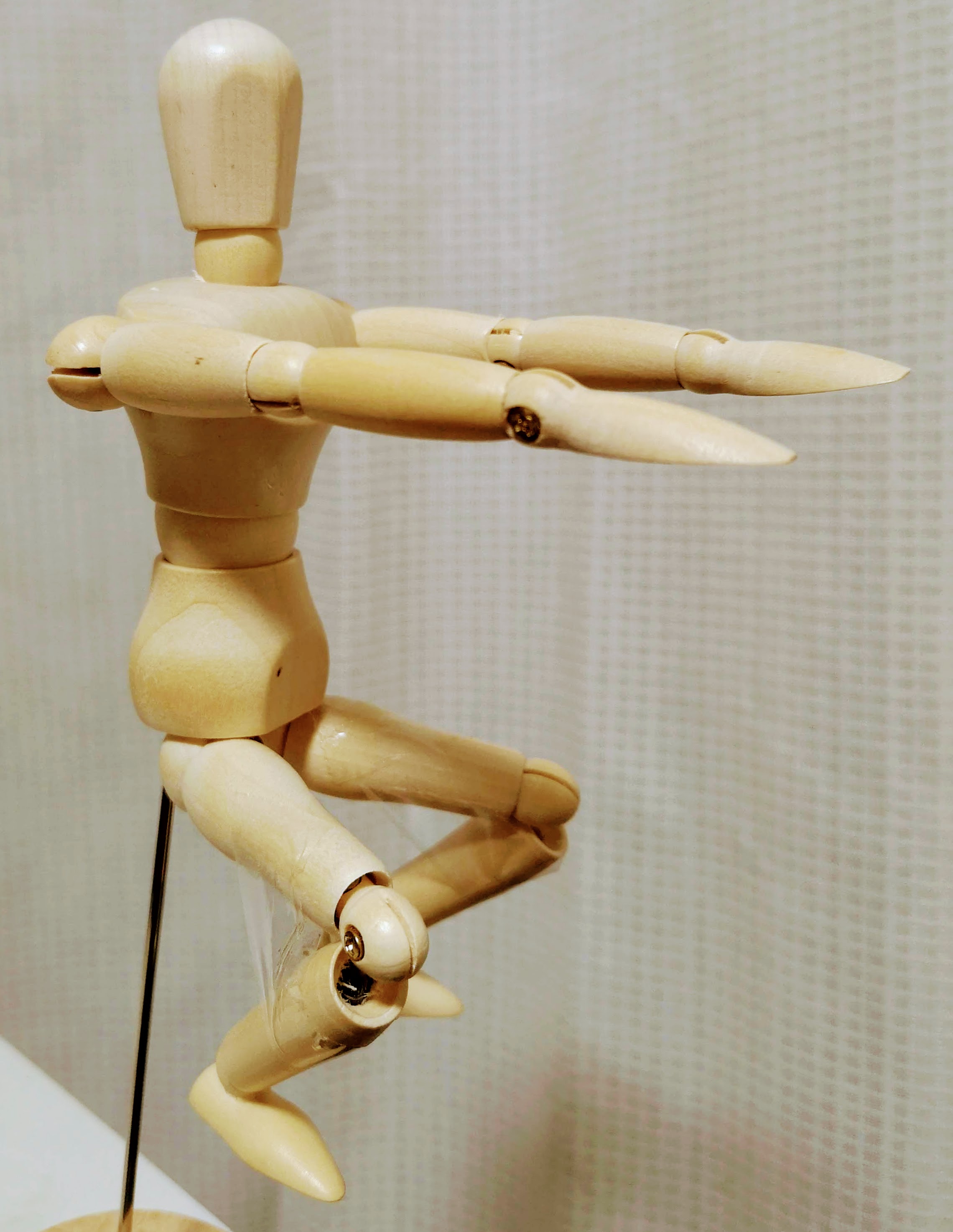 - 脚は、ふとももが、地面と平行になるまで曲げて、戻します