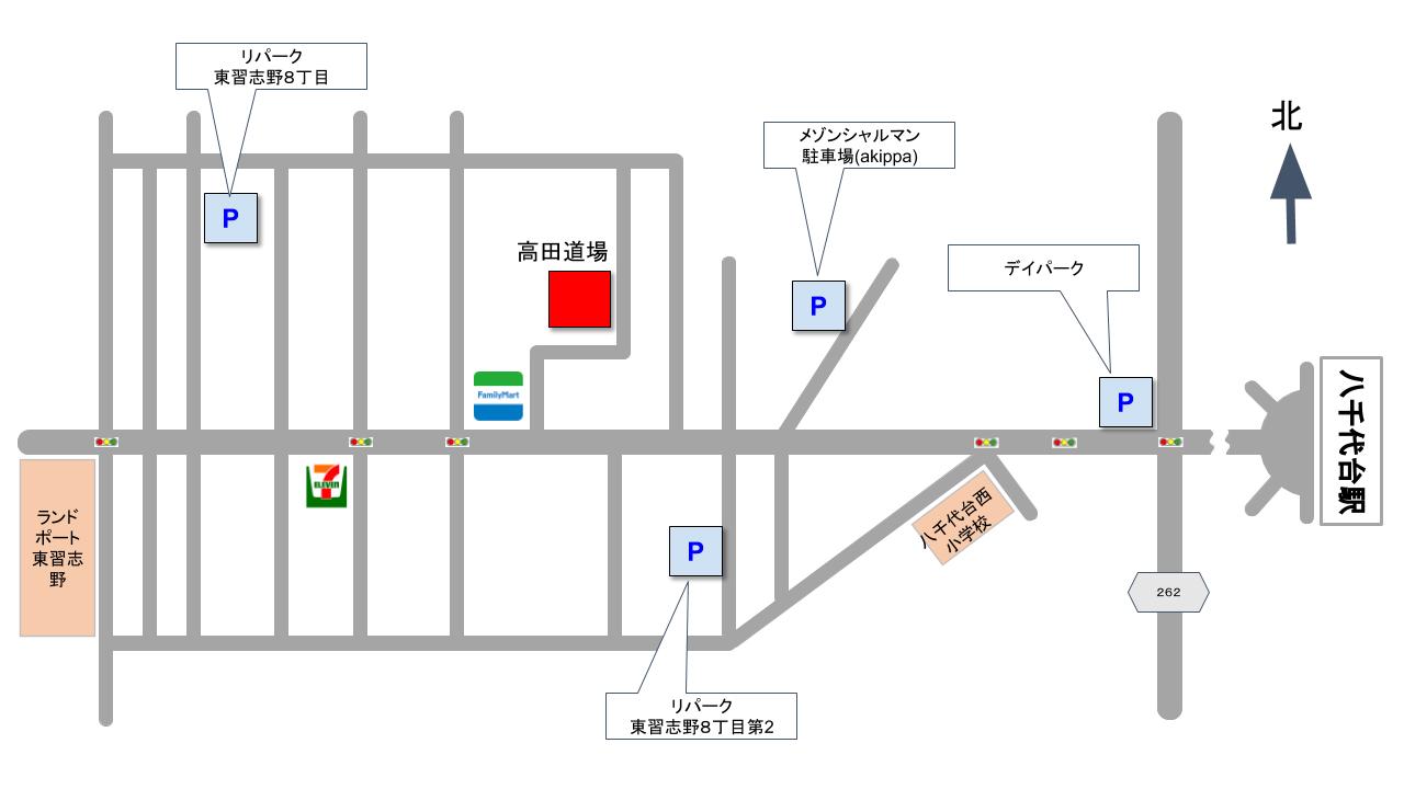 東習志野空手教室の駐車場は、2019年6月現在、満車になっており、新規での駐車受け入れは停止させて頂いております。できるだけ、徒歩・自転車、公共の交通機関を使ってお越しください。お車でいらっしゃる際は、恐縮ですが、周辺の有料駐車場をご利用いただく必要があります。