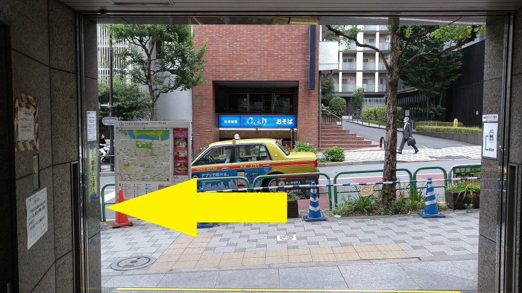 麹町空手教室に最寄りの半蔵門駅出口は「5番出口」です。正面の道路を挟んで向かい側に、そば屋(ゆで太郎)が見える出口を出て、左に進みます。