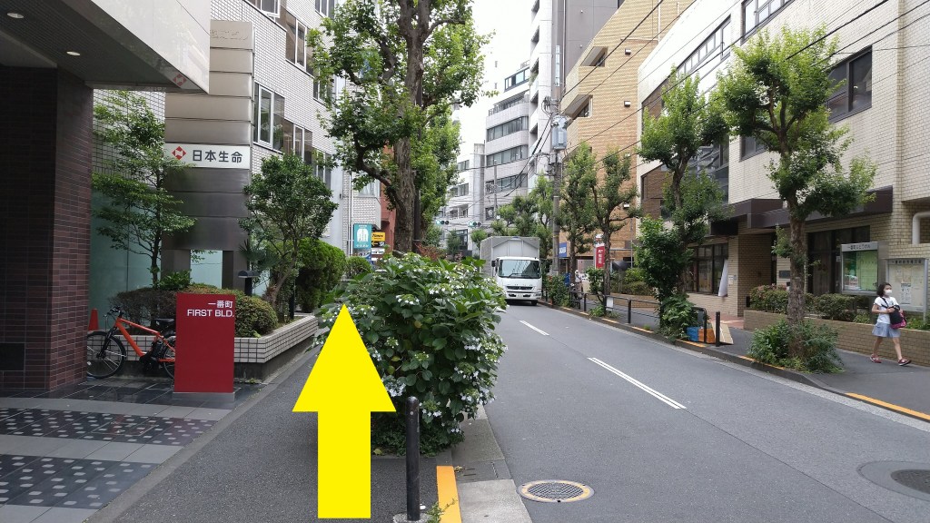 道路の右手に、郵便局(千代田一番町郵便局)があります。まだ直進です。