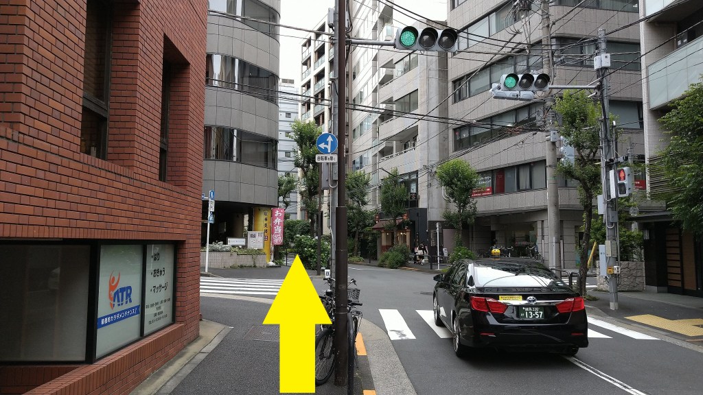 そのまま、左手にコンビニ(ファミリーマート)、そば屋(小諸そば)、黄色い看板の喫茶店(壱番館)を見ながら、直進します。