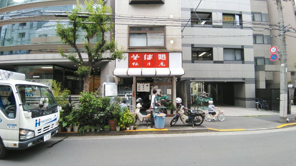 なお、麹町エイチティーズビル/みやびカタックダンスアカデミーの向かいは、特徴的な赤い看板のそば屋(松月庵)です。