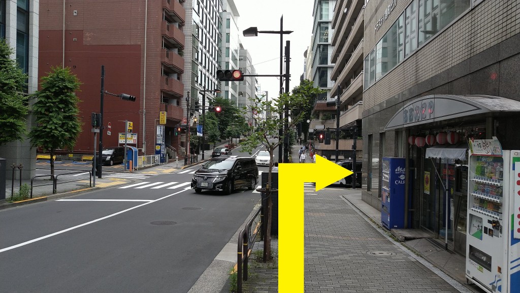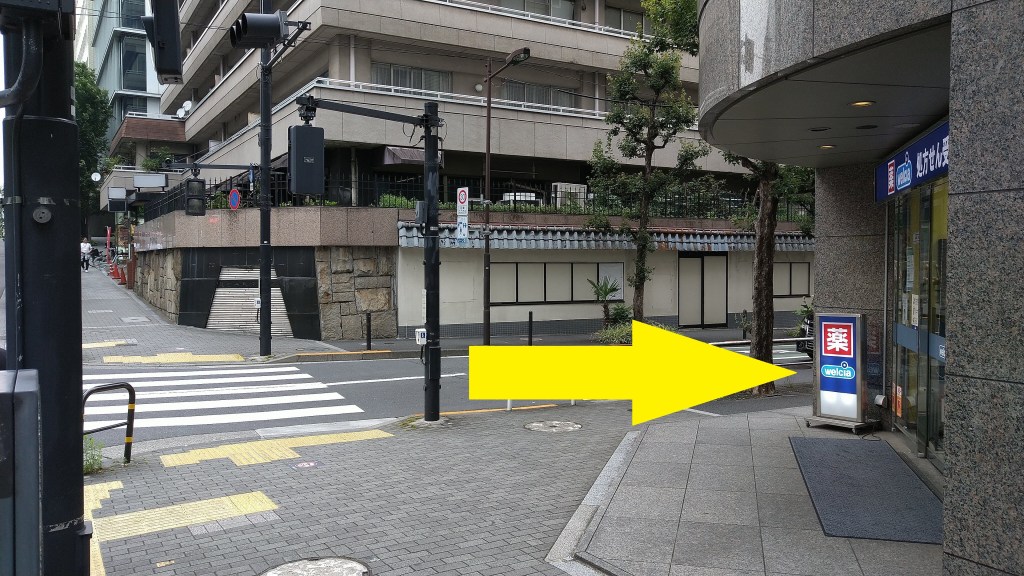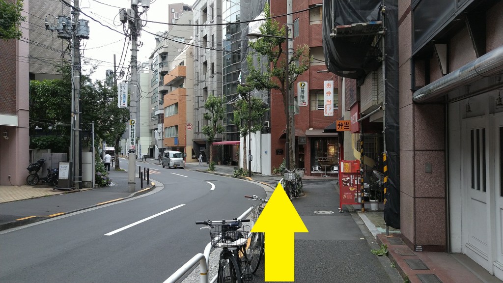ケーキ屋から20mほどで、道路右側にある、麹町エイチティーズビルに到着します。麹町空手教室は、麹町エイチティーズビル地下1階のみやびカタックダンスアカデミー内で開講しています。