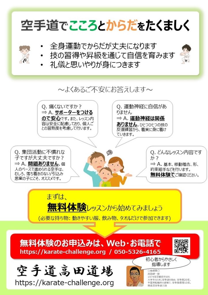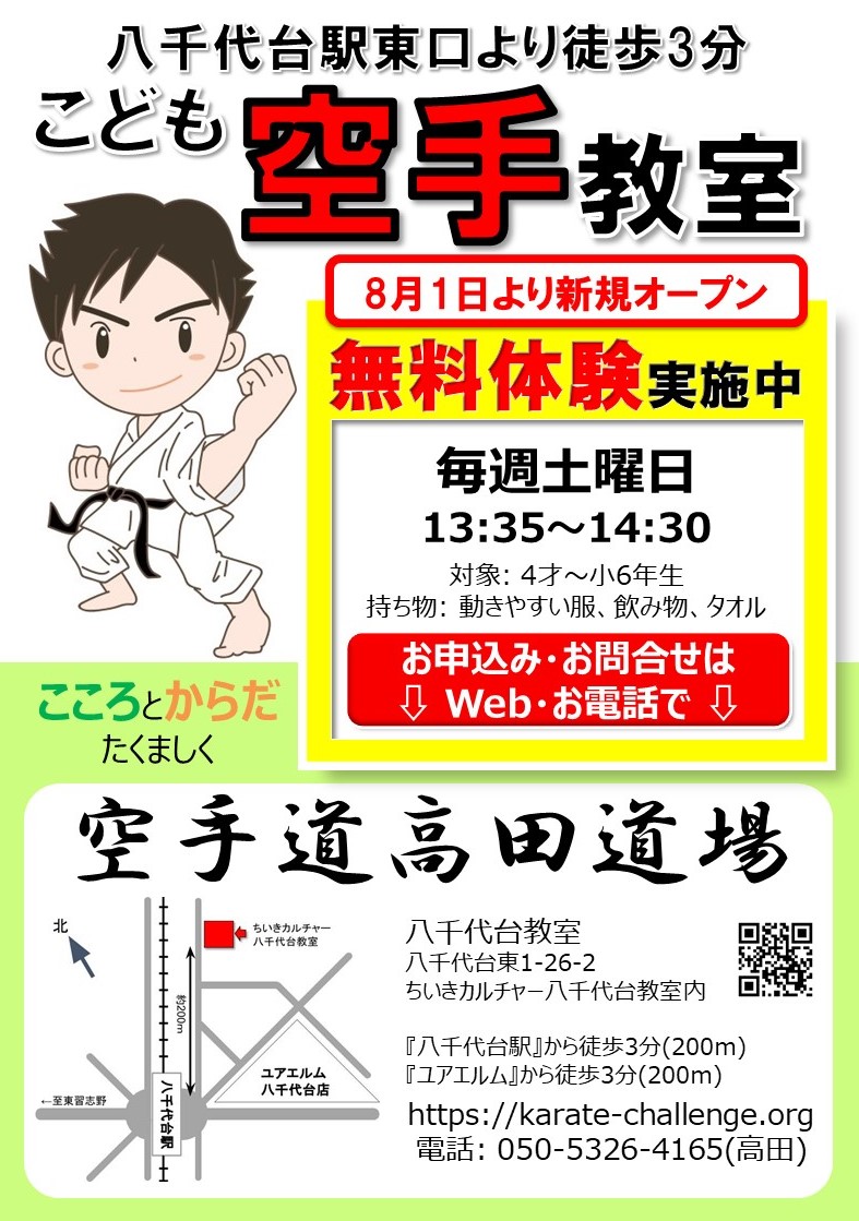 空手道 高田道場 八千代台こども空手教室の近隣に、ご案内チラシを配布させていただきます。以下にも掲載させていただきます。