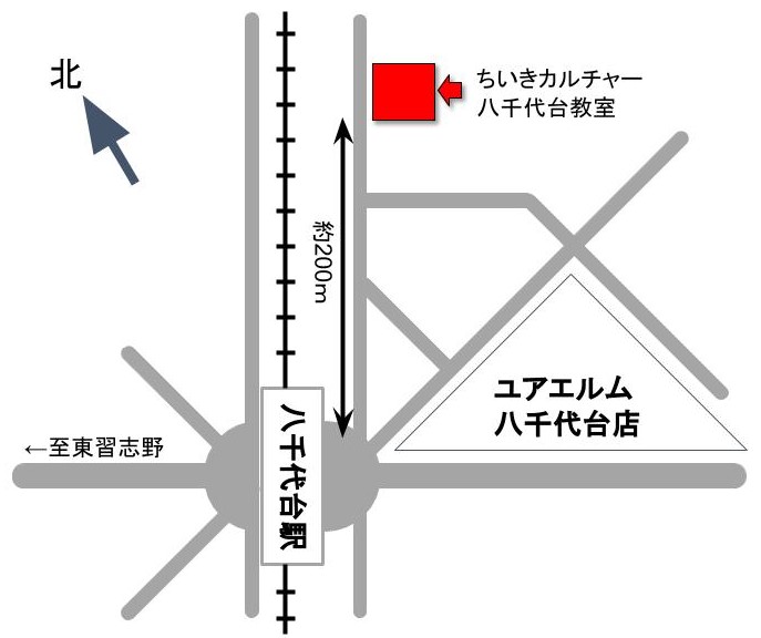 レッスン会場は、京成本線から徒歩3分の、ちいきカルチャー八千代台教室です。