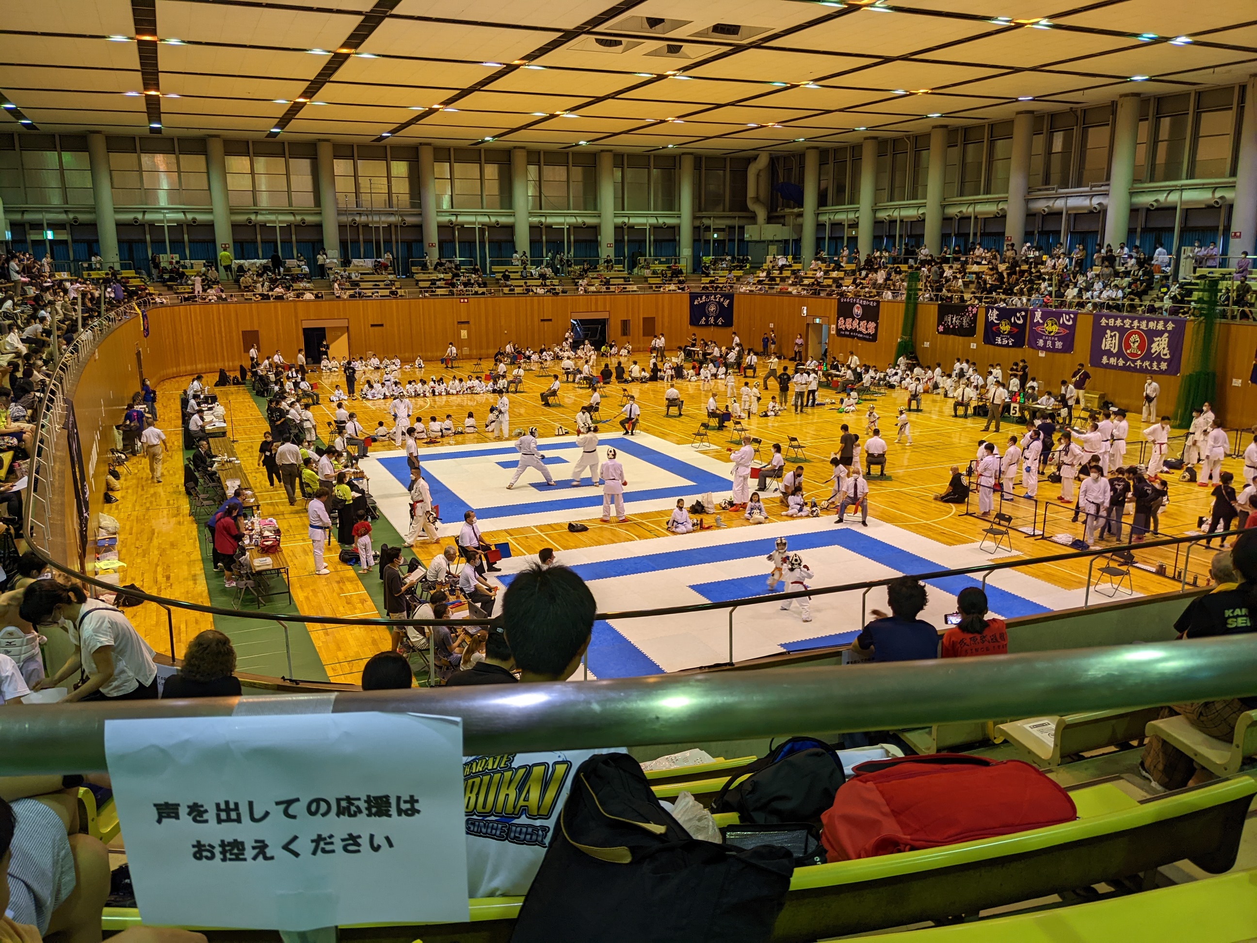 - アリーナに入れるのは選手だけです(但、幼児の部のみ、付き添い可)。観覧は2階観覧席から行ってください。