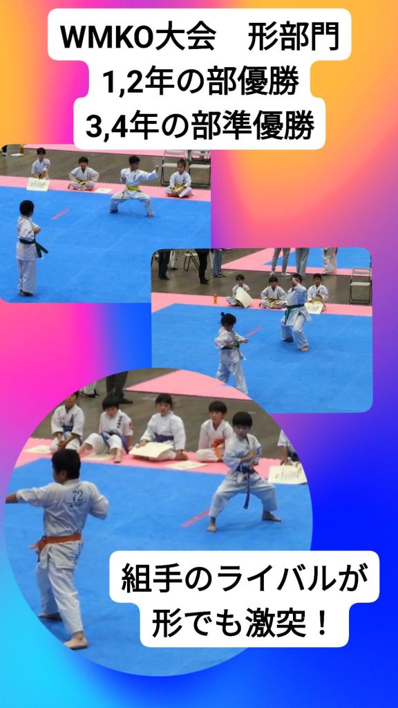 今回、高田道場からは、5名が出場しました。形と組手のダブルエントリーが多かったのと、一方で、いつものWMKO大会と比べて他の道場の出場者が少なかったのもあり、次から次に道場生の試合がある形で、テンポの良いコンパクトの大会でした。
