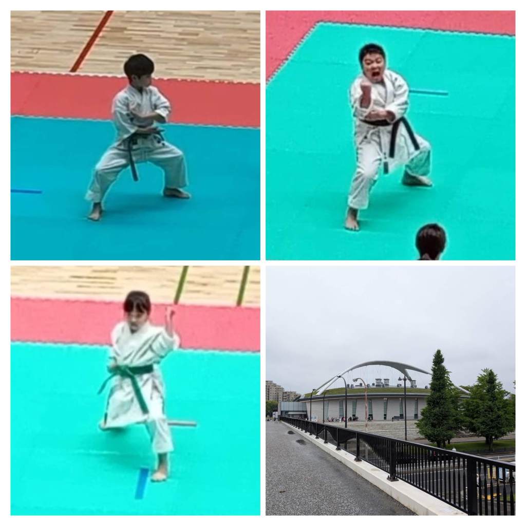 今回は、高田道場からは5名が参加しました。形と組手でそれぞれ3名ずつ(1名ダブルエントリ)が出場し、全員が持てる力を最大限に発揮できたのが、良かったです。初めて組手に参加した女の子は、負けはしましたが、自分より大きな相手に立ち向かって、しっかりとポイントも取ることができました。組手で、小学4年生の男の子が3位入賞の成績をおさめることができました。